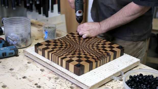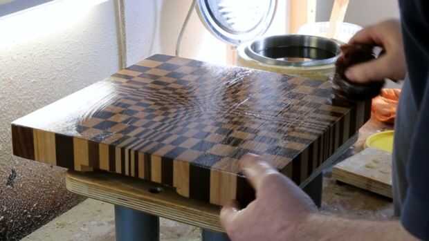 Tratar la junta con el aceite mineral. Con firmeza debe cerrar los poros de la madera y evitar la entrada de humedad en los granos. Utilizar baño de aceite mineral durante 10-15 segundos. Luego secar la placa durante 6 horas y repita la lubricación.