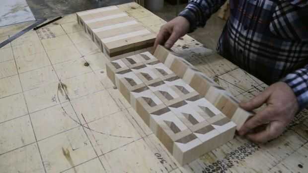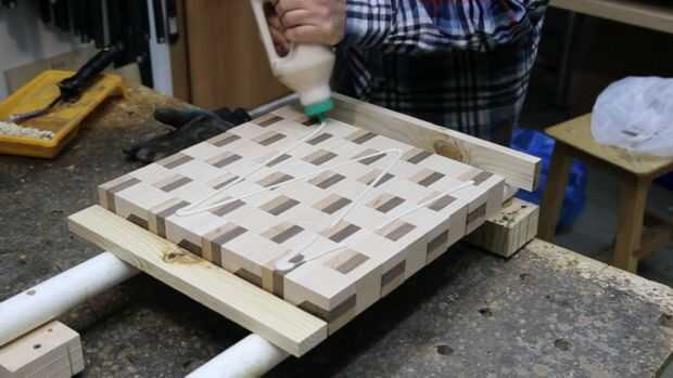 Gire todas las tiras de veta de 90 grados hacia arriba.