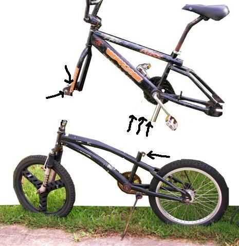 Para la moto en la foto, simplemente pegué los dos marcos al lado de uno así que tomaban un mínimo de altura. Envuelve un par cuerdas del amortiguador auxiliar alrededor de ellos. De esta manera que usted puede hacer su tallbike cabe en el asiento trasero de un Honda Accord de 1995.