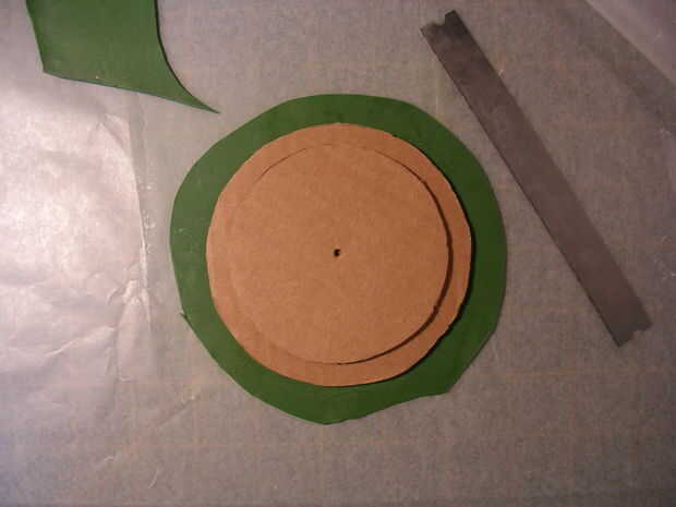 Coloque la lámina superior de arcilla sobre la mesa, poner la cartulina en la parte superior teniendo cuidado de centrar. Envuelva la serpiente alrededor de la tapa y cortar el exceso en la superposición.