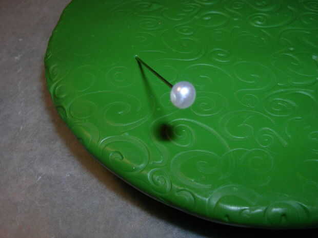 Si encuentras cualquier burbuja de aire (como lo hice) haga un orificio con un alfiler pequeño suavemente y presione la arcilla hacia abajo para permitir el escape del aire. Alisar sobre el pinchazo de alfiler con el dedo y continuar. También recomiendo pinchar unos agujeros en la parte inferior antes de hornear para que el aire escape como una tarta. Tuve un reventón durante la hornada que tuve que reparar. Puede reparar arcilla polimérica con más arcilla y volver a hornear si es necesario.