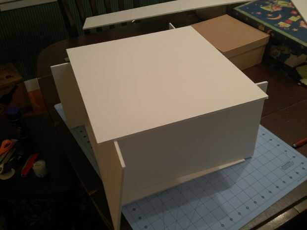 Asimismo, dos de los lados de cajas (la parte delantera y la parte de atrás) será toda la longitud del lado. Los otros dos serán un poco más cortos debido al grueso de los otros dos lados. Si dos lados son longitud (L) y el material es grueso (T) entonces dos lados deben ser (L - 2T) las juntas de núcleo de espuma usé fueron poco menos 1/4" Esto significaba siempre fui cortando casi 1/4 de la altura de todos los lados y casi 1/2" de la longitud de dos de las piezas laterales.