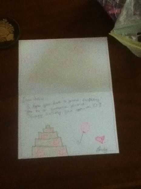 Así que una vez listo la cubierta, el interior. Es un poco difícil de explicar, pero tienes que justo somethkg del corazón. Mi bestow movido lejos y le escribí una tarjeta muy personal diciendo lo grande de un amigo fue y cuánto amaba ella y todas esas cosas, pero a veces para otros amigos solo escribo "Feliz cumpleaños su impresionante espero que tengas un gran" dentro, pero realmente depende. Pero sólo lo hace de la