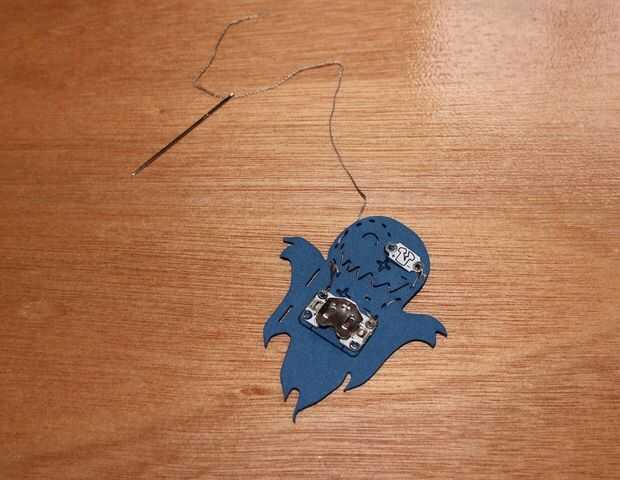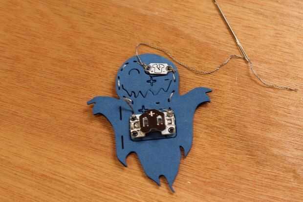 Coser a través de los orificios alternos hacia el LED como antes (imagen 8).