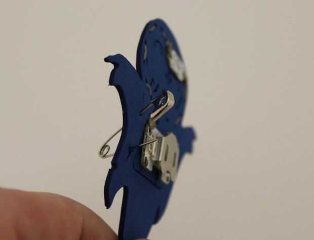 Mantener alimentación el perno de seguridad ronda hasta que esté todo el camino hacia todo en la parte trasera de la divisa y el pin a su ropa (imagen 14).