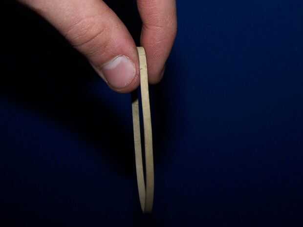 Hacer una tarjeta de plástico volar con una banda de caucho (1 / 3 paso)
