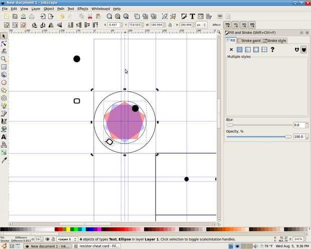 Luego copia y pega el punto negro y cero que es ahora en el lado plano hacia la posición central en los círculos, cambió a marrón y su valor en 1.