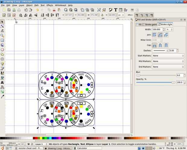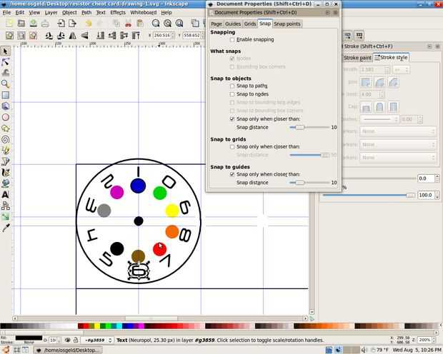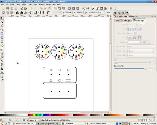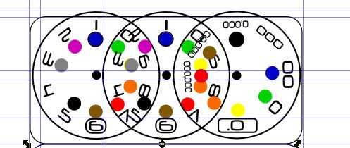 Una vez que tenemos todo lo agradable y bastante, seleccionar todo que sólo estaba trabajando, copiarlo y pegarlo, posición la copia donde el exterior de la segunda rueda es justo a la izquierda del punto de centro en la primera rueda añadir también otro punto sobre el punto del centro de ese círculo para marcar el agujero en la tarjeta.