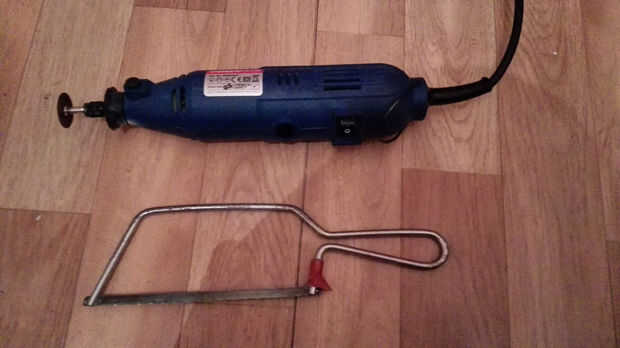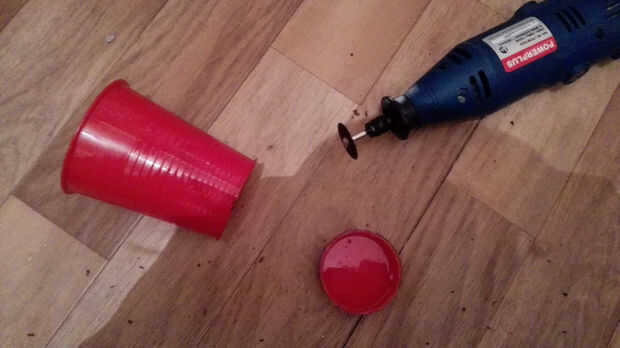 Usted puede hacer esto con un cuchillo del exacto, una sierra de metal o una multiherramienta (depende del material de la taza)