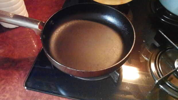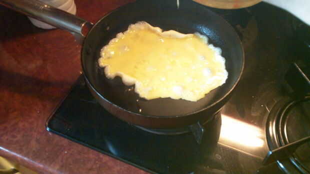 Coger una sartén y calentar para arriba. Luego, coloque el huevo mezclado en la sartén. No olvidar el aceite de oliva!
