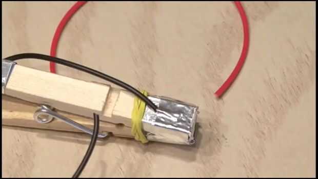 Ahora, poner papel de aluminio, cinta aluminio en cada mandíbula de la pinza para la ropa.