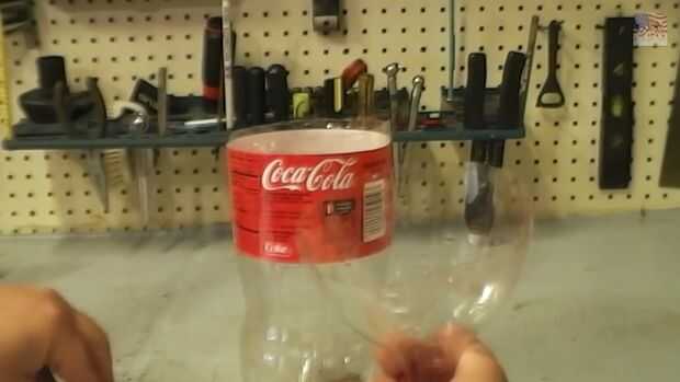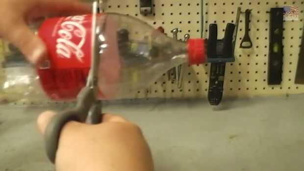 Luego tomar la botella y perfore un agujero lo suficientemente grande para una mosca obtener a través de la tapa. Luego con las tijeras cortan justo antes de la etiqueta engomada se inicia y recorrer todo el camino. Ahora agregue su cebo en el fondo es importante hacerlo ahora.