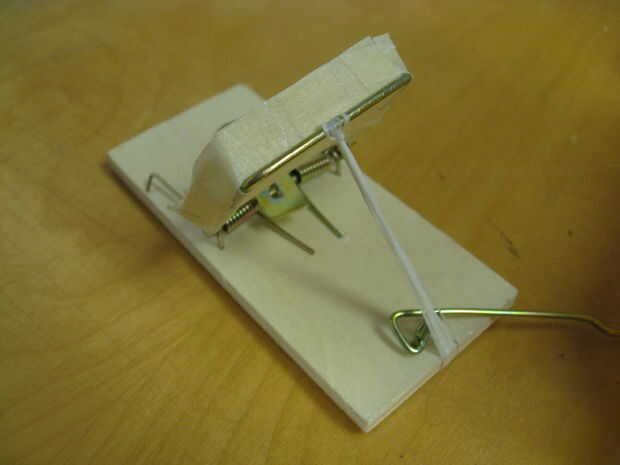un coche de la trampa para ratones es un ejemplo simple de la conversión del potencial en energía cinética.Si un par de residuos de madera, consumo de tubo, posavasos de cerveza o viejo CD usted puede utilizarlos para construcción.Si tienes un kit co