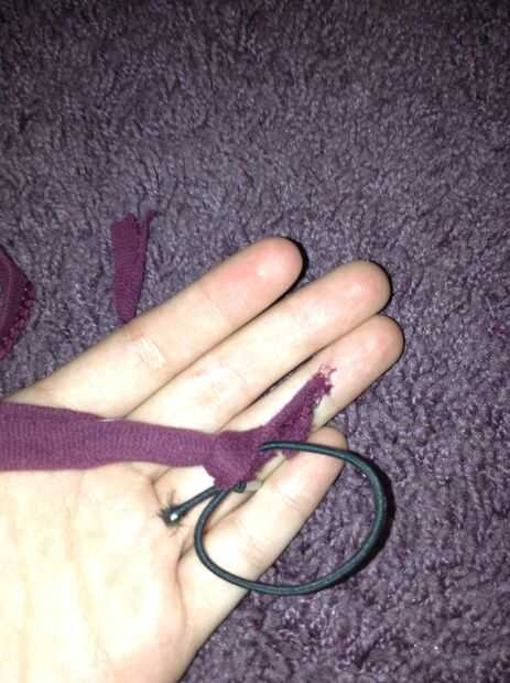 Atar cada filamento (por separado) en la banda de goma. Intente atar tan cerca como sea posible, si tu goma es pequeña como la mía. La corte sólo de los extremos del nudo.