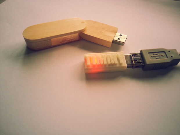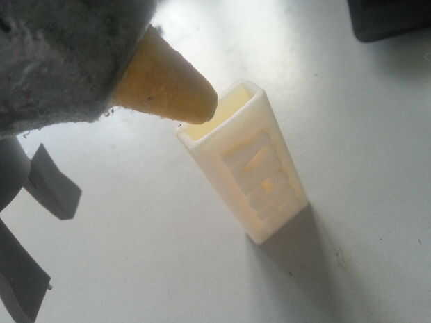 Una vez que reciba las piezas impresas que ahora puede añadir una cantidad generosa de pegamento caliente dentro después de que inserte el USB