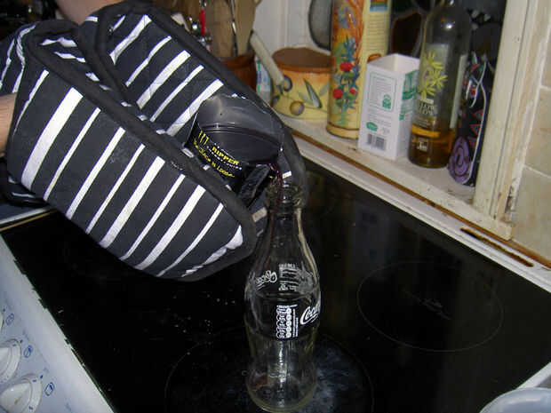 Ahora esperar la cera se endurezca, cuando lo hace, la botella de vidrio debe estar fría al tacto.