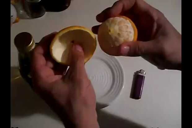 usted necesita:1. una naranja2. un cuchillo3. aceite de oliva (cualquier tipo)4. un encendedor o una cerilla (o cualquier cosa que se puede encender un fuego)Paso 1: Cortar la naranja por la mitad Con cuidado corte la naranja en 2 piezas, cada una co