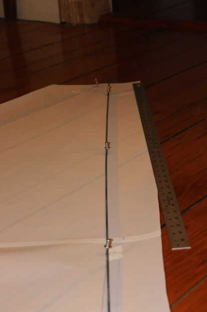 Para cada segmento de roach, alinee un palo de la yarda contra los pernos ya hayas colocado, encontrar el punto medio entre ellos y empuje otro pin en el punto medio.
