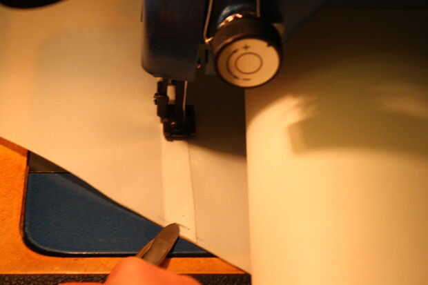 Tienes algunas opciones en cómo posicionar su máquina de coser. Vela profesional lofts tienen la máquina construida en el piso, con el operador sentado en un hueco bajo el suelo. Este es por lejos la mejor manera de ir, pero obviamente poco realista para el resto de nosotros. Para nosotros, podemos poner la máquina en el suelo, o haz unas pocas mesas. Dolores de espalda a un lado, establecer en el piso tiene muchas ventajas que hacen que el proceso de una pequeña vela más fácil de coser. Velas grandes, tablas pueden ser mejores, porque puede toma sus extremos como rampas y la vela grande se deslice en la máquina.