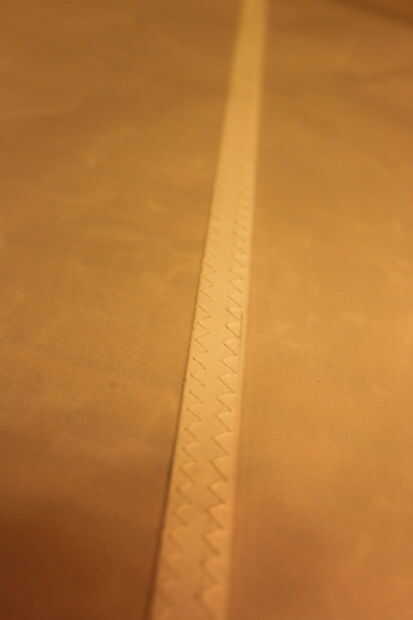 Para estas uniones usé hilo #46 con una aguja #14. Configurar la máquina con la tensión superior ligeramente más alta de lo necesario. En mi opinión, mejor que un poco demasiado alta tensión superior que al riesgo de un desorden gigante debajo.