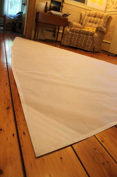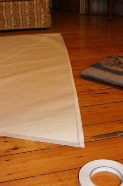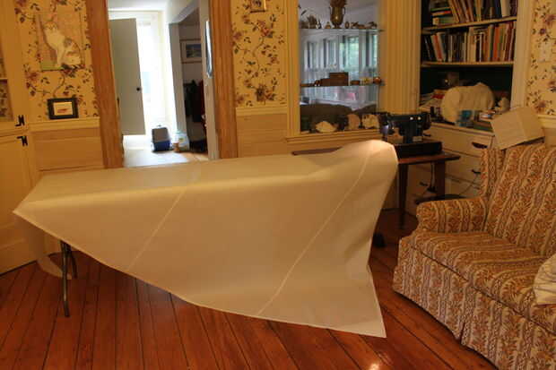 El problema con tablings doblado es que tienden a ser demasiado flojo en bordes redondeados (como los pies) y demasiado apretado en bordes huecos (como entre los listones de la sanguijuela). No mucho se puede hacer que más allá de tratar de suavizar las cosas tanto como sea posible cuando plegable con cinta adhesiva. En vela un poco como esta, no es un motivo de preocupación.