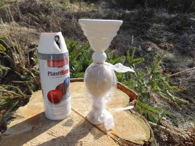 Proteger la parte que no desea pintar por envoltura de plástico alrededor de él. Varias capas de pintura de aerosol en su palmatoria y deje que se seque. Usar guantes y mascarilla para protegerse.