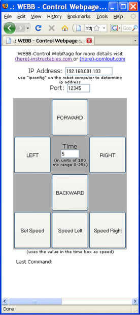 - Tipo en el internet IP en la casilla "Dirección IP" en la Página Web de control y su Robot conectado Web impulsado desde lejos.