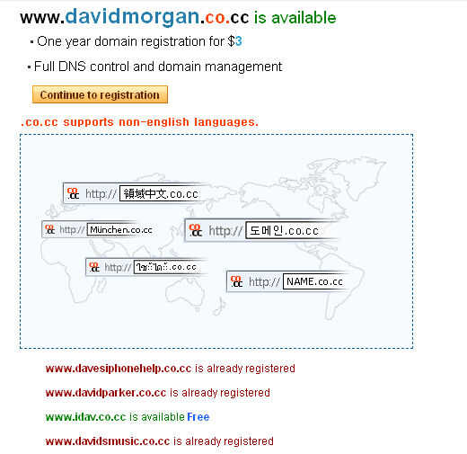 1. encontrar un nombre de dominio que es raro por ejemplo- yourname+lastname.co.cc o su name.co.cc de la empresa (si su nombre de la empresa es larga entonces iniciales).