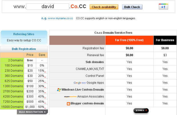 Cuando se desea registrar un dominio libre de freeco.cc, tal vez encuentre que cobran $3 o más para un cierto dominio.