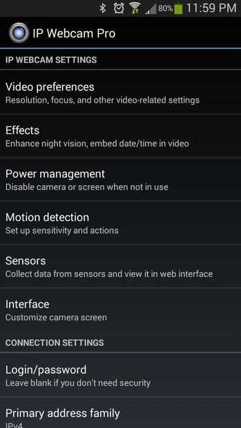 Sólo un lado nota--no necesitaba alguna de estas opciones para mi configuración, pero usted puede configurar esta aplicación para actuar como una cámara de seguridad. Puede grabamos videos loops, ser movimiento, luz, o sonido activado, tomar una foto en ciertos intervalos, etc..
