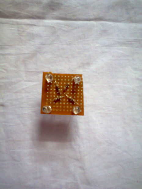 Soldar los LEDs y las resistencias como en el diagrama del circuito.