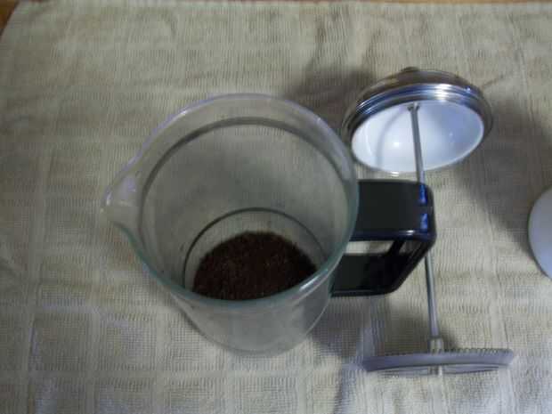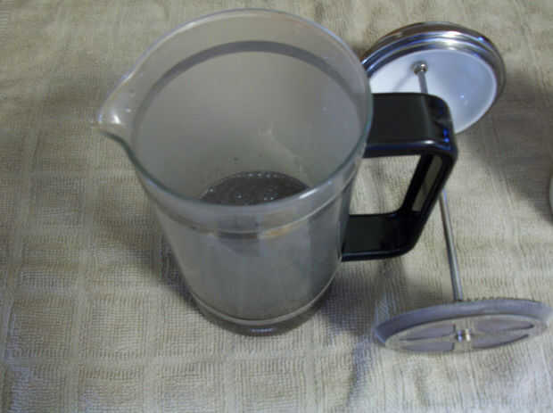 1. ahora que tienes tus granos, vierta el agua caliente de la prensa y echar los granos de tierra.