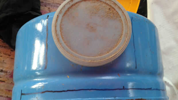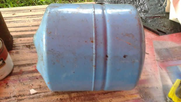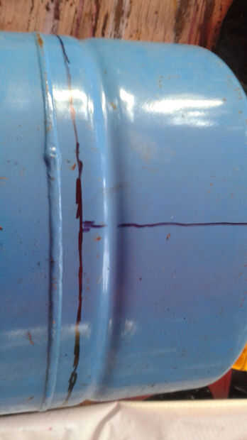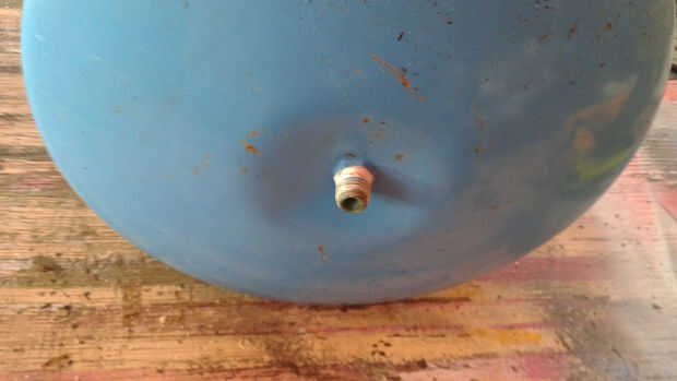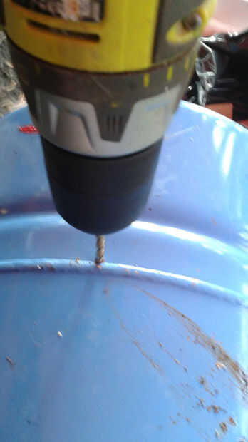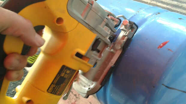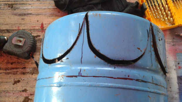 Primero perforé un agujero piloto para la hoja de rompecabezas encajan. Asegúrese siempre de que cualquier tanque está libre de presión o gases inflamables antes de corte o perforación. Trazó un diseño de corona en el tanque de incorporar la ranura para aumentar la estabilidad y recórtalo.