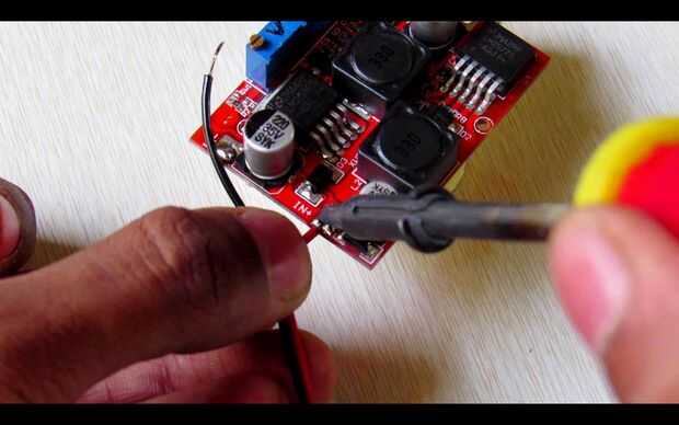 1. terminales cuidadosamente de la soldadura de entrada y salida del Convertidor Buck con polaridad apropiada.