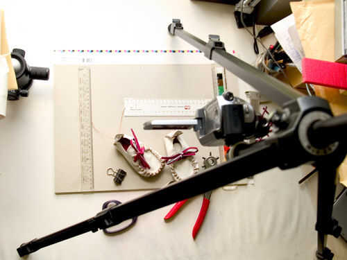 Foto de arriba, podía ver la etapa de hacer zapatos y posición de la cámara en el trípode.