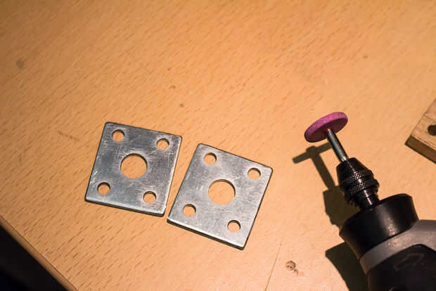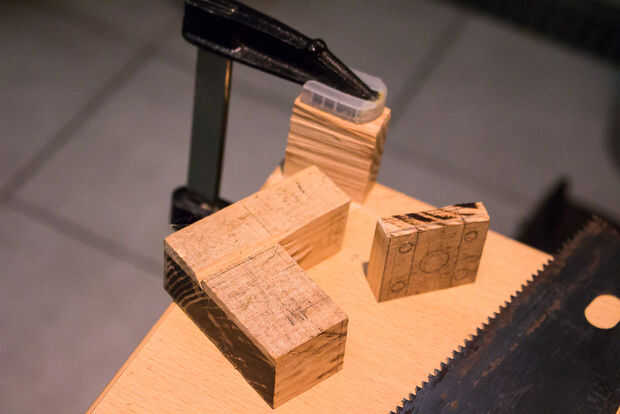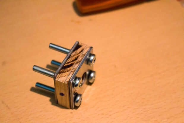 Para el corte y lijado utilicé una sierra de mano normal para madera y una amoladora angular - Dremel combo para metal. Perfore agujeros en la madera e intenta sandwich ahora, tal ves la anchura máxima de una ranura que se puede realizar en el siguiente paso.