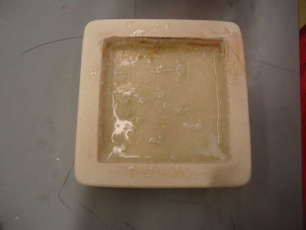En teoría, el desmoldeador debe causar el cristal al caerse cuando invertida, pero a menudo no funciona que bien. En cambio, encontrar un punto débil en el cristal en la esquina del molde y usar un cincel pequeño o cabeza plana Destornillador para empezar alzaprimar hacia fuera el cristal. Tenga cuidado de no romper el molde! Agua puede utilizarse para lavar la colada polvo horno a medida que avanza.