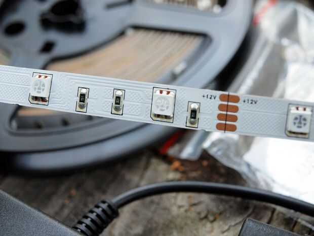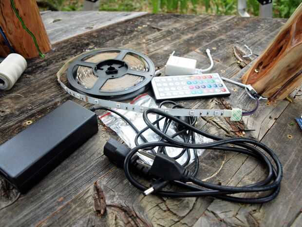 Compré un juego de luces de LED que están en una tira. Están diseñados para ir en la parte superior de una habitación y añadir luz indirecta. Pensé que esto debería funcionar perfecto para correr en el interior de mi lámpara. El juego viene con un control remoto que permite gran control de las luces. Hay muchas combinaciones de colores y todo el conjunto utiliza sólo 3 vatios de potencia. También es posible agregar más a la misma tira mucho las luces de Navidad de forma misma.
