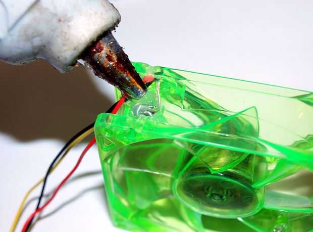 En LED muchas fans que las luces simplemente se presionan ajuste en su lugar y los alambres de conexión son a menudo desnudos. Usted les debe cubrir con un pegote de pegamento caliente del derretimiento para aislarlos y mantener en su lugar. También poner pegamento en los cables de donde salen de marco del ventilador. Finalmente debe poner protectores de la parrilla de ambos lados para proteger a los aficionados y los dedos.