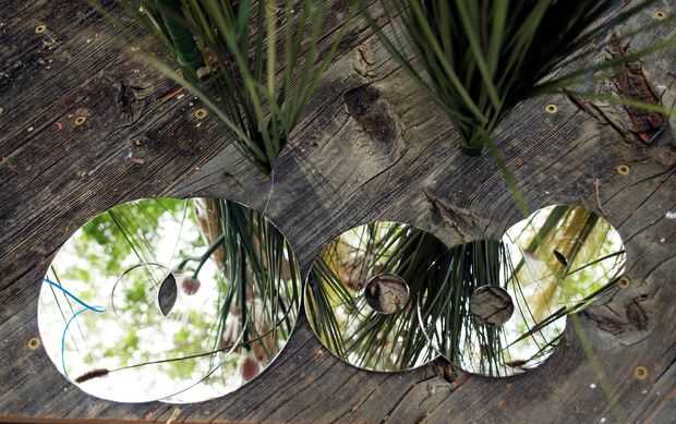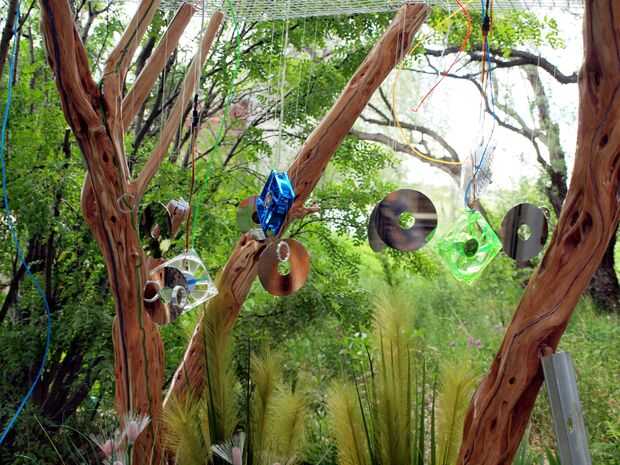Otra razón para los platos del disco es que tienen un espejo acabado. en el día cogen la luz del sol y lo reflejan todo. También la vista que ves está siempre cambiando como rotación los discos. En la noche reflejan las luces de los ventiladores y la LED crea un efecto interesante sobre el terreno alrededor de la lámpara.