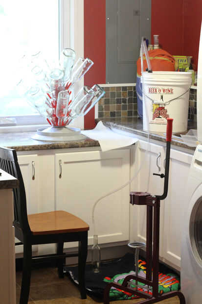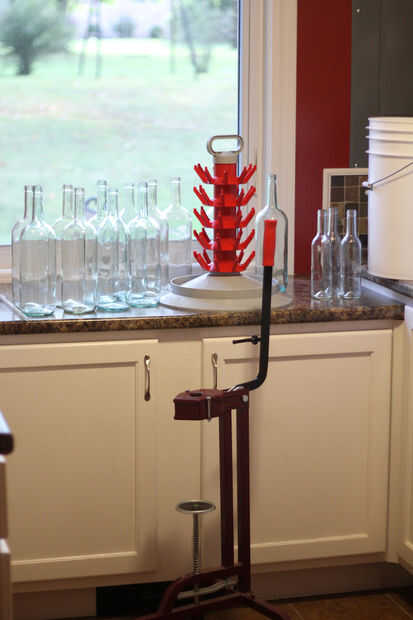 Me gusta mientras la botella y es bueno tener todo lo que necesitas en brazo. Escoger una botella del árbol de secado, ponerlo entre mis pies (fije mis pies contra él por lo que no se vuelque) y entonces poner en el relleno de la botella. Muchas veces gravedad será suficiente mantener a punta de rellenadores de botellas abiertas y llenar la botella para hacer otras cosas mientras que está sucediendo. Voy a tomar este tiempo para poner un corcho en la cerradora de tapón a mi derecha y conseguir otra botella del árbol a mi izquierda. Una vez que la botella se llena (que es generalmente la parte superior de la botella---una vez que eliminar el eres más o menos en el nivel exacto que tienes que ser para que no tenga exceso de aire en la botella) pongo el relleno en la siguiente botella, corcho de la botella se llena solo, reservar, haz otro corcho y obtener otra botella. Ello, sin embargo quiero. Me gustaría corcho enseguida ya que utiliza ese tiempo perdido durante el llenado de la botella, pero podría llenar todo de tus botellas primero y luego corcho.