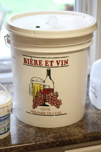 Un fermentador primario (ese cubo grande 7.9 galones blanco en la foto)