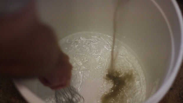 Seriamente. Arena para gatos. Bueno, tipo de. Se llama bentonita. Es un tipo de arcilla que, debido a la su cargos molecular puede ayudar a enólogos precipitadas proteínas del vino antes del embotellado más adelante podrían romper y hacer el vino nebulosos o feos bits flotante en ella. Las instrucciones de estos equipos siempre dicen utilizar sobre un medio galón de agua tibia. Nunca me he molestado calentarlo. Vierta en uso un batidor desinfectado y batir hasta que quede un verdadero torbellino. En este punto usted puede poco a poco salpicar en el polvo de arcilla y continuar a batir a incorporar sin agrupar (como arena de gato es conocido por hacer). Sólo evitar que la llovizna golpeó el bate o se consigue una estructura hasta que se rompa en grupos.