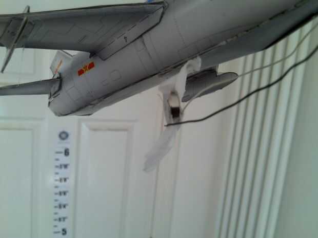 Paso4, uso la pistola de pegamento para pegar el motor al avión, asegúrese de que los cables no están en el camino de la propllers