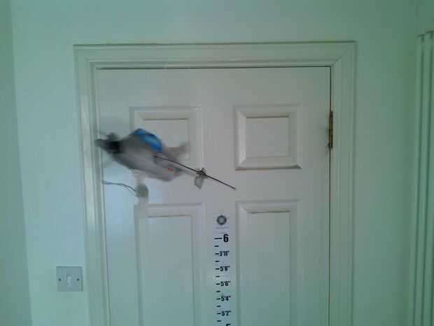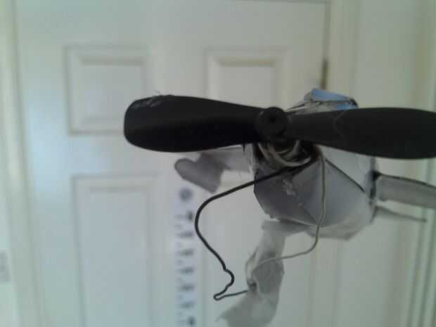 Step5, cinta los cables a cada lado de la pila del reloj, cambiar de bando si sus propulsores son rotación de forma equivocada, que desea el viento a soplar hacia atrás en orden para su avión seguir adelante.