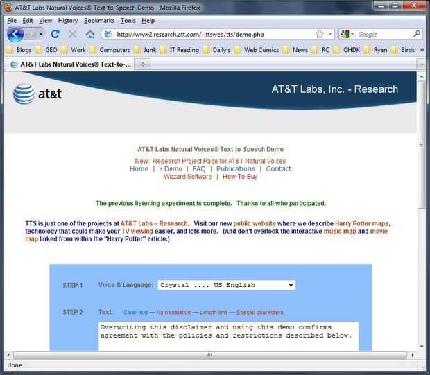 Ahora haga clic en "SPEAK". Si te gustan los resultados, haga clic en "Atrás" en su navegador y seleccione "Descargar" en su lugar. Guarde el archivo con un nombre único. Utilicé "hellomasterryan.wav".