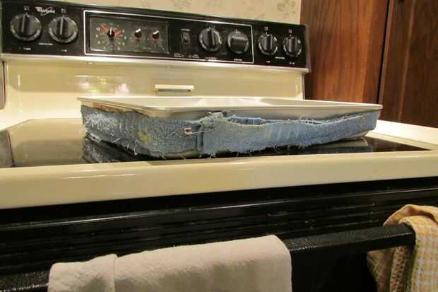 Antes de poner la bandeja en el horno, humedezca una tira de tela de una toalla de baño, abrigo alrededor del exterior del recipiente y la clavija en lugar. Esto evita que los lados de la olla se caliente demasiado. Sus bordes no te duros y los lados de la torta se cuece al horno en la misma proporción que la media y la torta será más nivel. (También se puede comprar cinta de seguridad donde comprar suministros de torta).