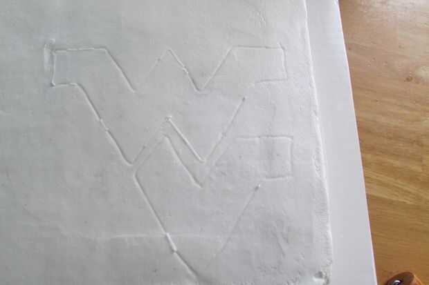 Cubrirla con un trozo de papel de cera y traza sobre la imagen con glaseado blanco usando una punta de tamaño Nº 1.