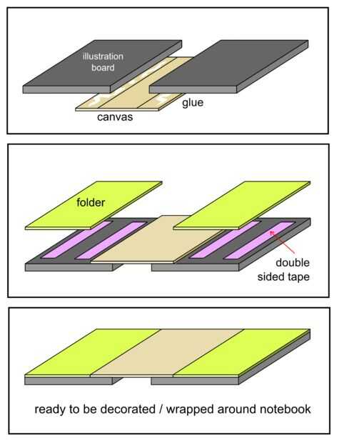 dibujarlo en su lona impregnada. por lo que es un rectángulo largo como sus tapas de cartón y tan ancho como el espesor combinado de la columna vertebral, margen de 2 mm + un área donde usted puede pegar en la cartulina. corte hacia fuera, asegúrese de que todo encaja perfectamente y pegar las láminas de cartón a la lona. para asegurarse de que la cubierta quede antes que decora, pegar en un par de hojas de carpeta. pégalos en con la cinta de doble cara. usted no querría más humedad a la cartulina.