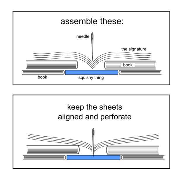 me gusta perforar todas las hojas en una firma de una sola vez para que cuando la puntada, los orificios se alineen perfectamente.